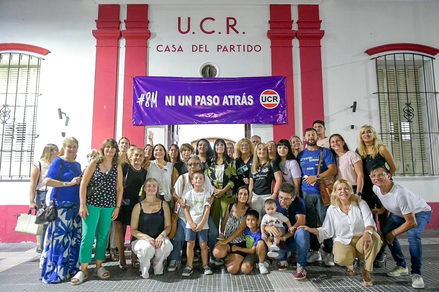 La actividad se realizó en simultáneo a la tradicional movilización de los feminismos en la capital provincial, que recorrió calles Laprida y La Paz, camino a Plaza Mansilla, a solo 50 metros de la casa radical.