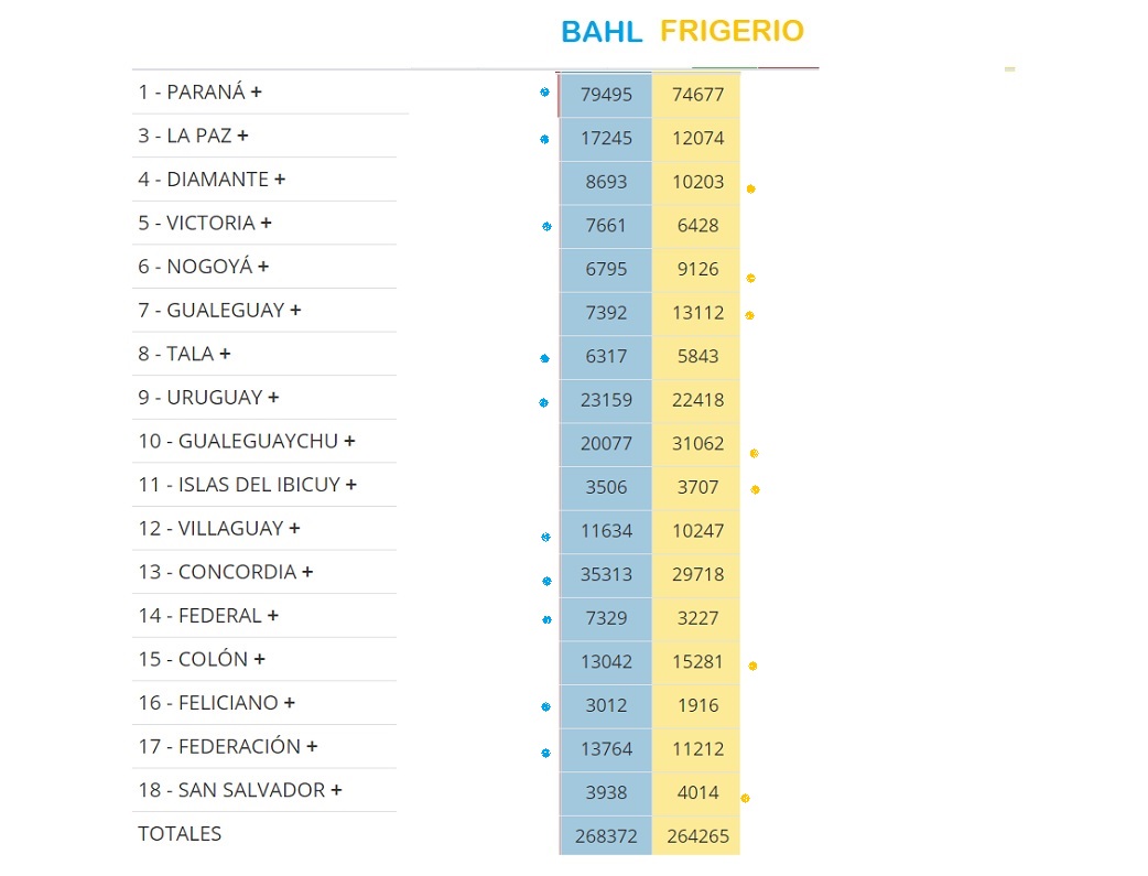 Frigerio golpeó en Gualeguaychú especialmente donde alcanzó una ventaja de 11 mil sufragios respecto de Bahl, y en Gualeguay donde logra aventajar al peronismo en alrededor de 6 mil votos.