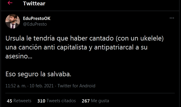 Mirá si voy a borrar algo porque a un grupo de infradotadEs como vos les hace picar la cola. Saludos https://t.co/Pv4cEIwsF5— EduPrestoOK (@EduPresto) February 10, 2021