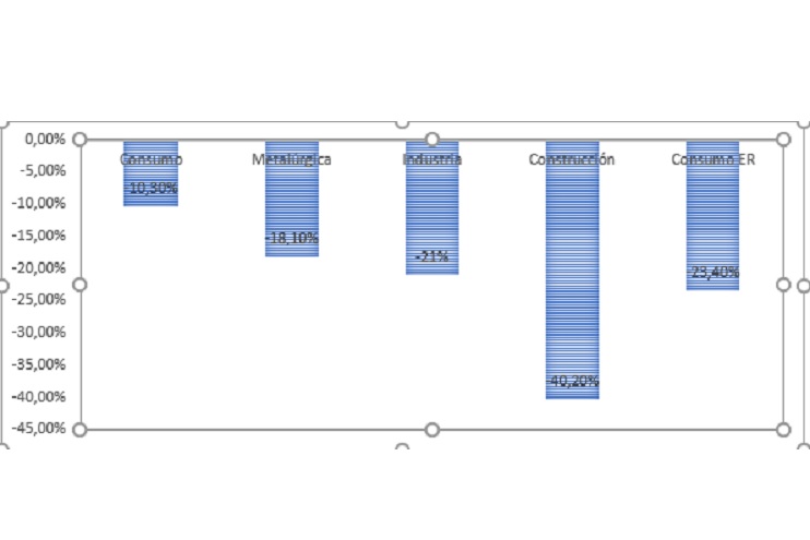Con base en datos de la Unión Industrial Argentina y el Indec, Gabás apuntó que “en el caso de la industria metalúrgica, se registró una caída del 18,1% y el promedio de toda la actividad industrial, es de pérdida en la producción del 21%, en base a datos de Indec. Para el caso de la construcción, la paralización de la obra pública en comunión con la crisis económica llevó al sector a una caída del 40,2% de manera interanual”.