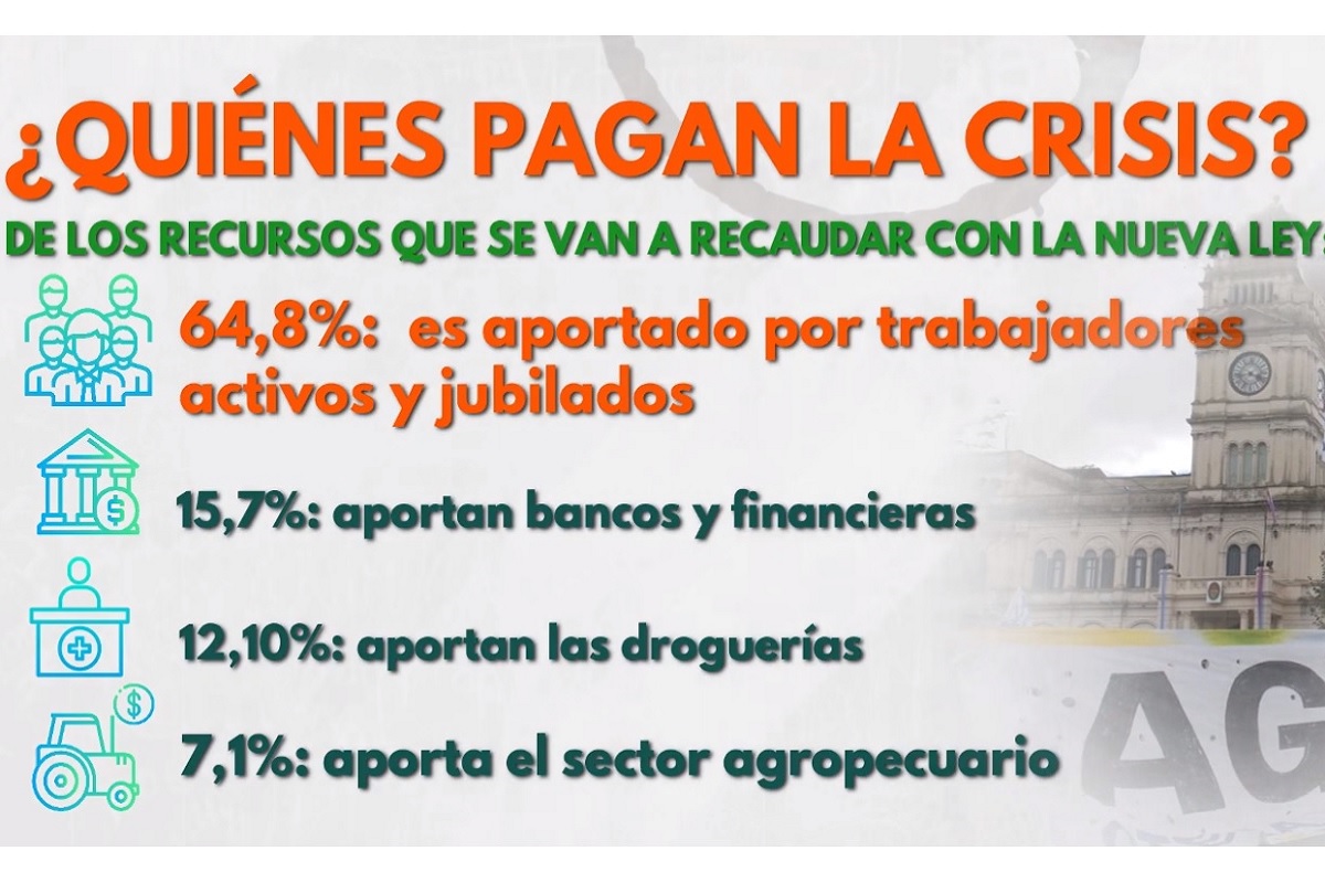 En porcentajes, entonces, las previsiones de recaudación apuntan a que el 64,8% provenga de activos y pasivos; un 15,7% lo aporten los bancos y financieras; un 12,1% las droguerías; y un 7,1% los propietarios de más de mil hectáreas de campo.