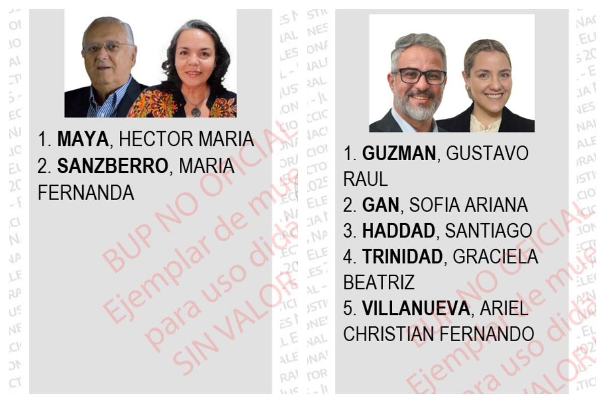 La columna que en la BUP aparece a la izquierda de la del PJ (que no se llama PJ) también propone candidatos peronistas: el ex senador nacional menemista Héctor Maya y el ex diputado provincial Gustavo Guzmán. Por separado, ambos intentaron competir en la interna del PJ, pero sus listas fueron rechazadas por insuficiencia de avales.