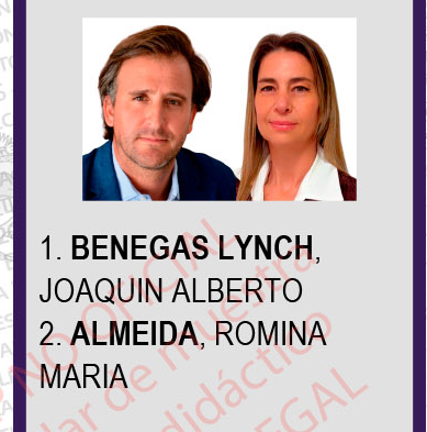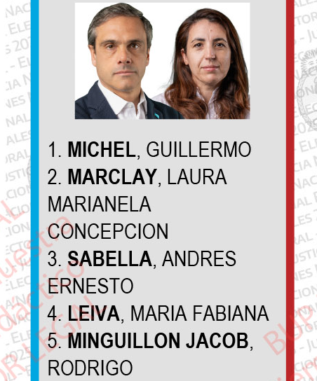 Abajo se ven dos caritas desconocidas, que debutan en política, con sus nombres al pie: Benegas Lynch, Joaquín Alberto y Almeida, Romina María.