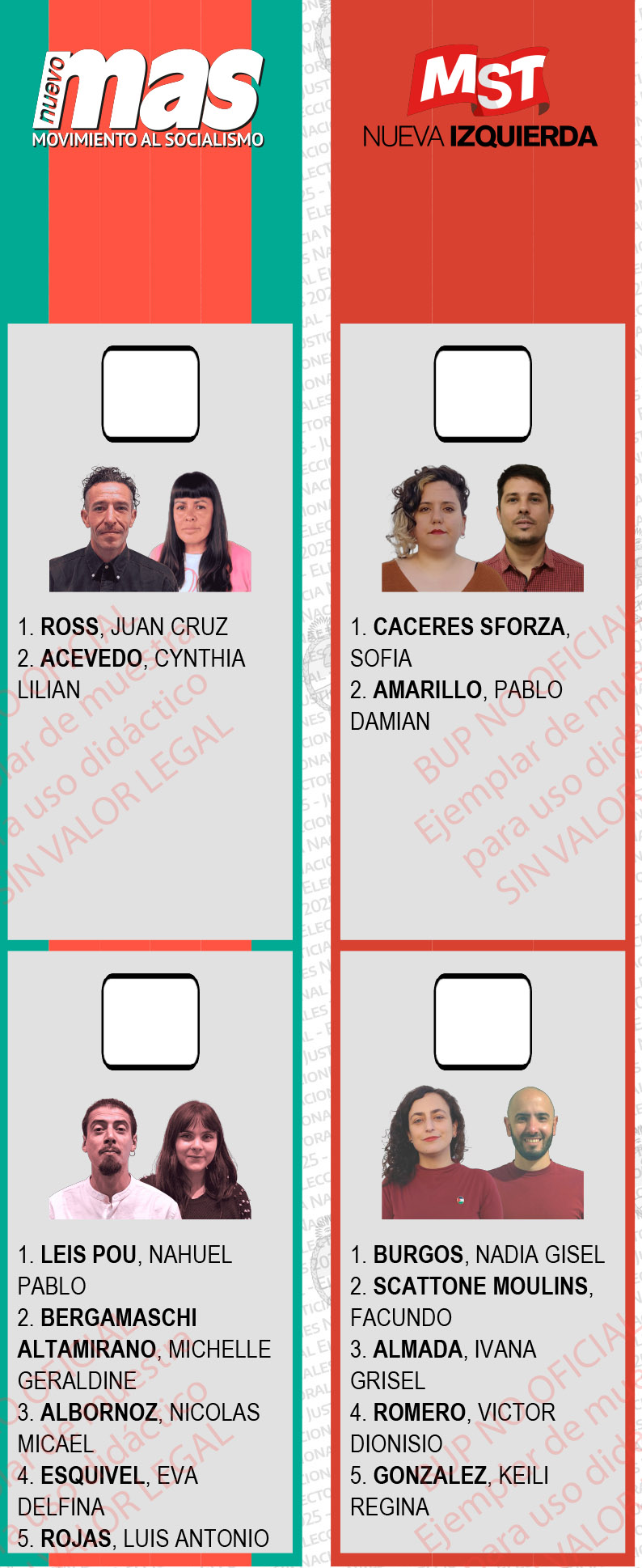 La BUP se completa con las dos opciones de la izquierda, que el azar del sorteo ubicó justamente en el extremo izquierdo de la BUP.
