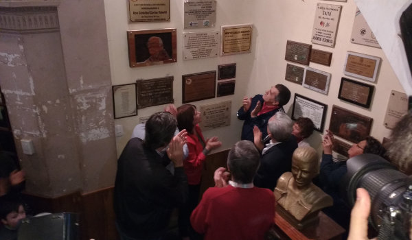 Carlos Molina y Mercedes Solanas se arrimaron, pero no se mezclaron con las batucadas que hicieron un círculo en la calle, frente a la puerta de la sede, para acompañar los cánticos de una mayoría juvenil que coreó a Néstor Kirchner.