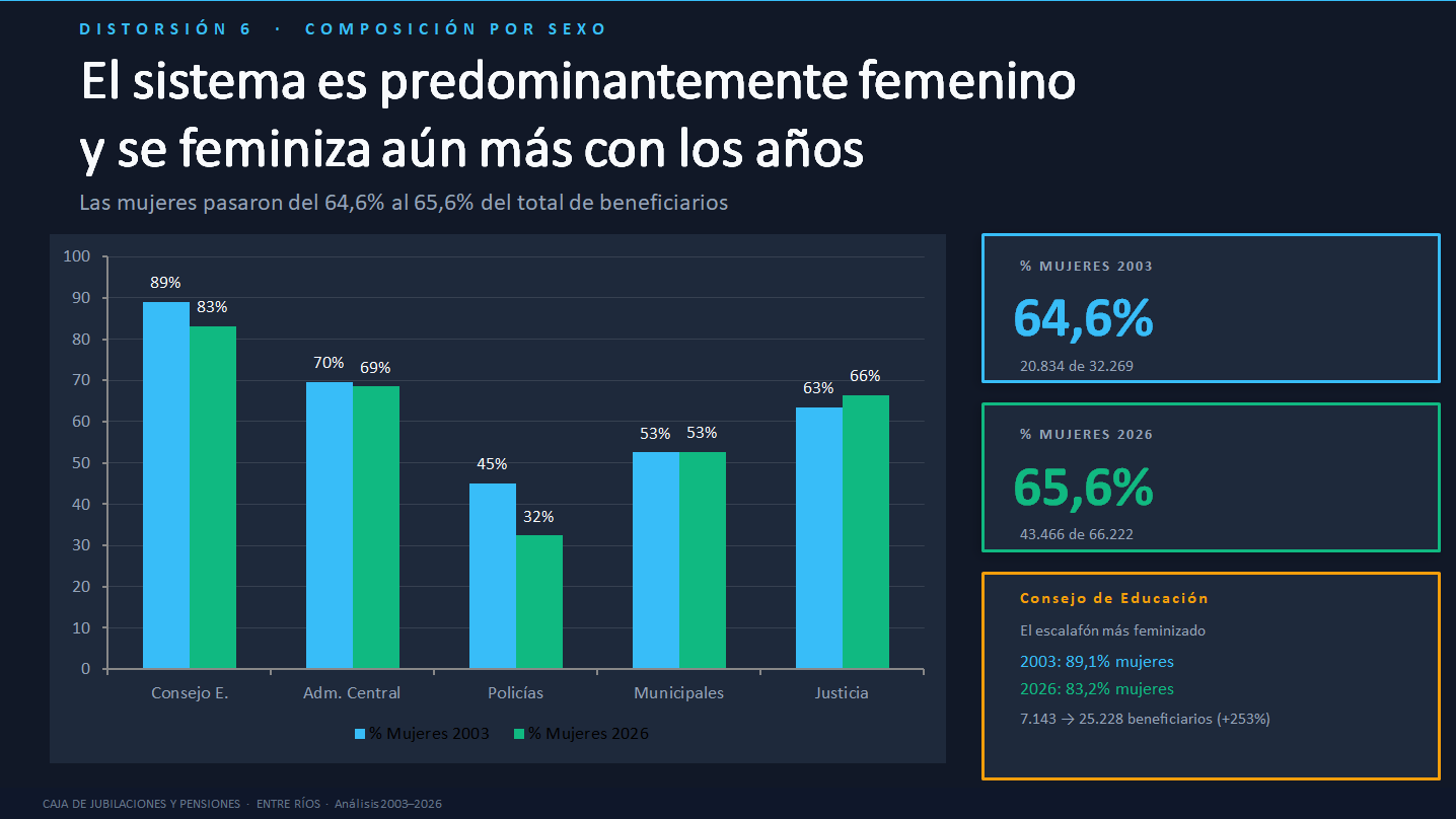 En el gobierno afirman que todos los sistemas previsionales en el mundo tienen igualdad de género. Y que el sistema entrerriano está fuera de rango en la edad de jubilación de las mujeres. El grupo más numeroso es el de las docentes que pueden acceder a su retiro a los 52 años, a través de un régimen especial.
