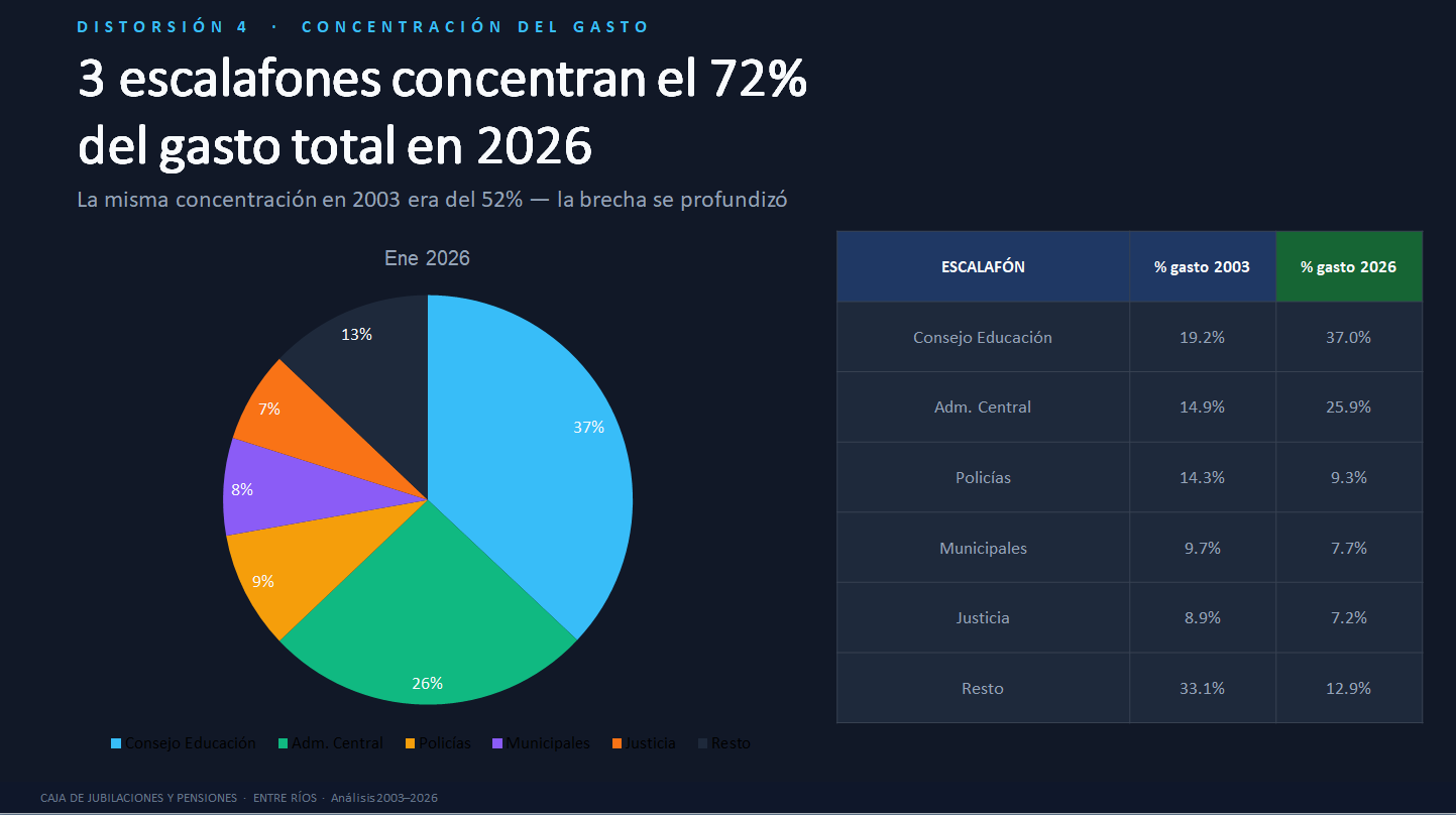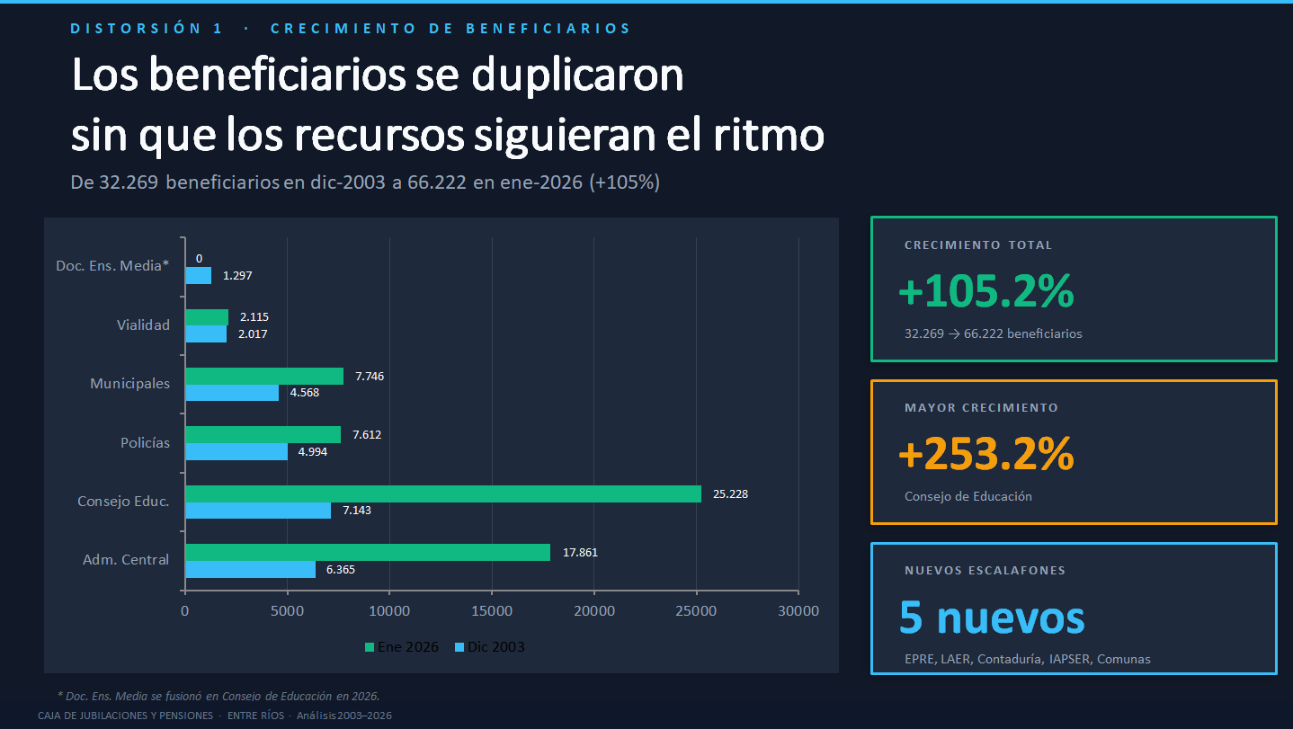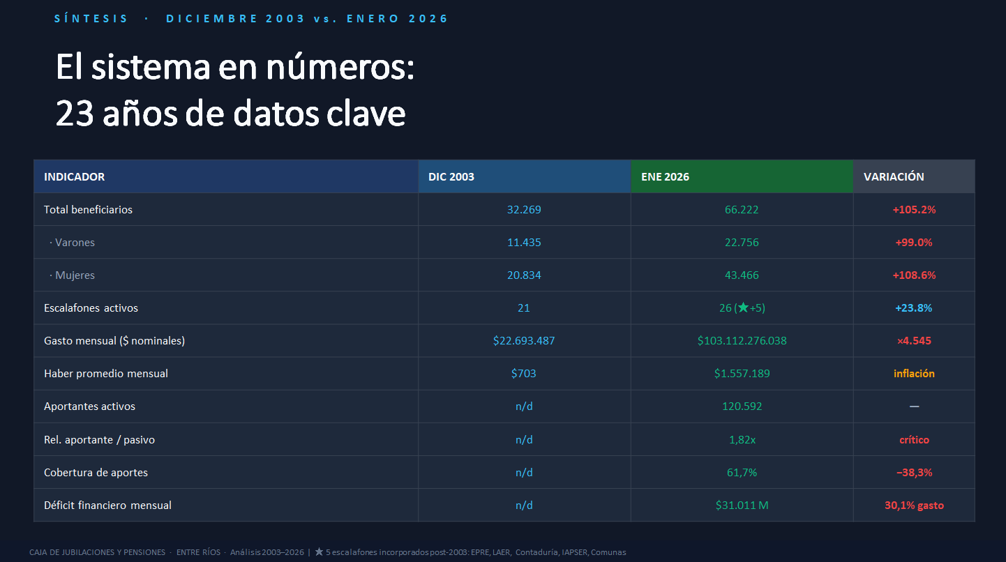 Son 5.000 millones de pesos por mes que se llevan los jubilados del Banco de Entre Ríos y de Epeer, pero sin aportes. Cuando esas empresas se privatizaron, los activos pasaron a aportar a Nación y no se hizo una reserva actuarial que cubra esos aportes para la Caja provincial. Es un vacío que el Estado provincial (todos los entrerrianos que pagan impuestos) cubre hace dos décadas. Son 60.000 millones de pesos por año; algo así como 1.000 millones de dólares en aportes que no entraron a la Caja. ¿Algún responsable político?