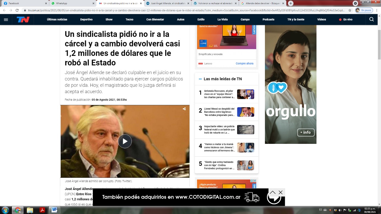 En las horas previas a conocerse la decisión del juez Elvio Garzón, los principales canales de Capital Federal se inundaron de imágenes de José Allende con casi un mismo graf El sindicalista que debe devolver……Parecía que se estaba hablando de una cosa juzgada. Que el acuerdo entre el Ministerio Público Fiscal y la defensa ya había sido homologado. Pero no.