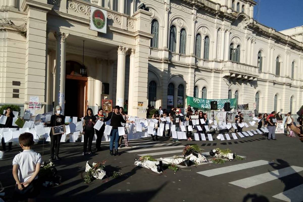 Con números artísticos y puestas en escena en la explanada de Casa de Gobierno, la Plaza Mansilla fue este martes el escenario elegido para reclamar una vez más por la prohibición de agrotóxicos en un contexto de “días de muerte”, como catalogó una de las oradoras.