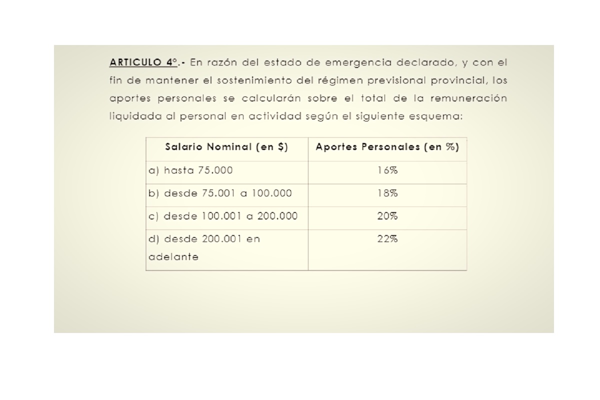 Debieran incrementar en un 2% su aporte a la Caja, mientras dure la emergencia, quienes, por caso, tienen esta realidad: