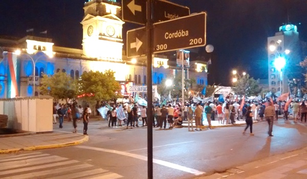 Recostada sobre la Casa de Gobierno (a partir de unos diez metros que ocupaba el escenario) la militancia peronista llegaba el domingo hasta calle Laprida, con algún blanco para el lado del Palacio de Educación que se compensaba en la ocupación de calle Santa Fe en el otro extremo.