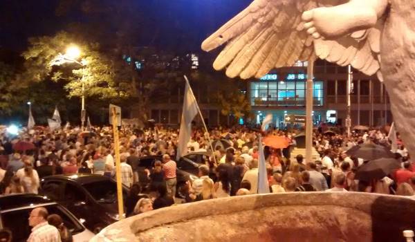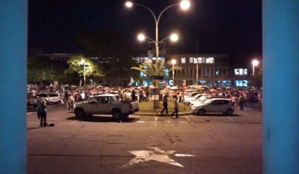 Recostada sobre Tribunales (a contar desde la vereda) la concentración del miércoles llegaba hasta la mitad de la plaza, quizá algo más, ocupada en forma pareja en ambos costados. A diferencia del domingo, este miércoles había muchos autos estacionados que, como en un día normal, ocupaban un importante espacio. La foto muestra la vista que había desde la puerta de Casa de Gobierno.