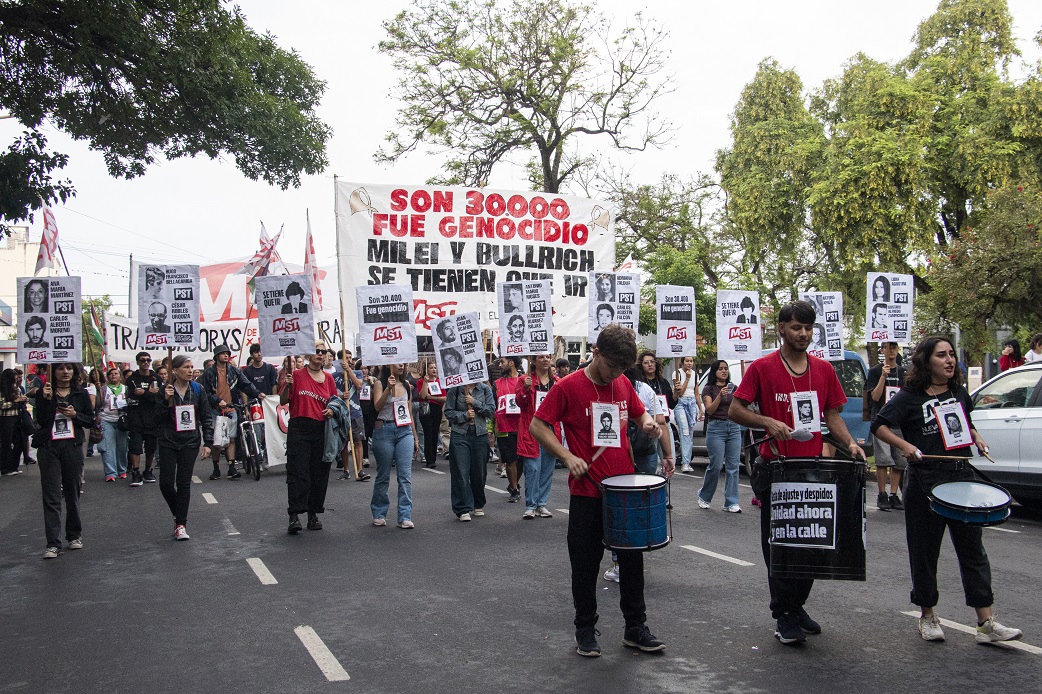 “Hoy al enemigo interno lo construyen en los jubilados, los trabajadores, los desocupados, los jóvenes, los migrantes, las mujeres y las disidencias, también en este movimiento de derechos humanos que hoy llena las plazas de nuestro país”, se afirmó en el texto que cuestiona a Javier Milei, Victoria Villarruel y a Patricia Bullrich por sus políticas represivas y señala al gobernador Rogelio Frigerio como cómplice de este accionar.