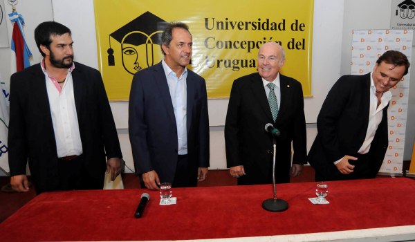 Acompañado por el rector, Héctor Sauret, Scioli resaltó especialmente “el impacto positivo de las industrias que se han instalado en Entre Ríos” y calificó a la provincia como un “lugar estratégico geográfico del corazón del Mercosur”.