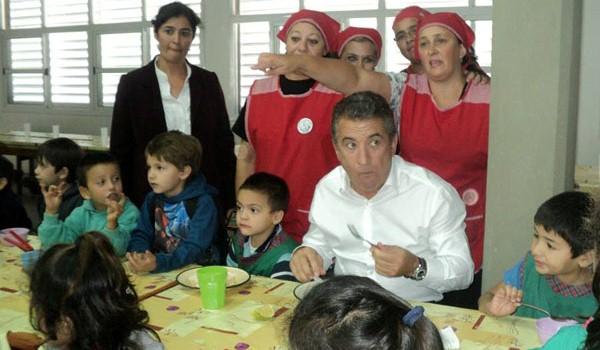 La fotografía muestra al gobernador Sergio Urribarri y precandidato presidencial del Frente Para la Victoria, en una visita al comedor de la Escuela Esteban Echeverría de Concordia.