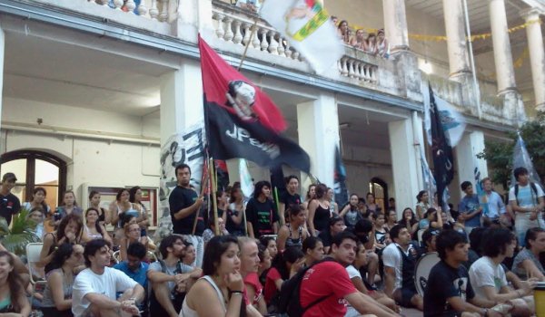 Mientras Espacio Abierto celebraba, cantaba, ganaba protagonismo en el patio de Trabajo Social; el Frente quedó un poco detrás. Fue hasta que alguien intentó con los primeros versos de la marcha peronista. Los militantes de uno y otro sector, los que ganaron y los que perdieron, fueron uno solo cuando se unieron para darle fuerza al himno oficialista.