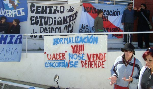 Se recuerda que el espacio se constituyó durante la toma de Rectorado donde se levantó como bandera “el fin de la intervención” y con ella “la idea irrenunciable de no sostener, reivindicar o apoyar a quienes fueron o son interventores, puesto que quienes han estado en la cabeza de la universidad y de las distintas facultades, han defendido incansablemente sus intereses corporativos y mezquinos, siendo socios del poder político de turno, atentando sistemáticamente contra la posibilidad de que la Uader sea una universidad democrática, transparente, donde todos podamos ser partícipes activos de las decisiones que determinarán nuestro propio futuro”.