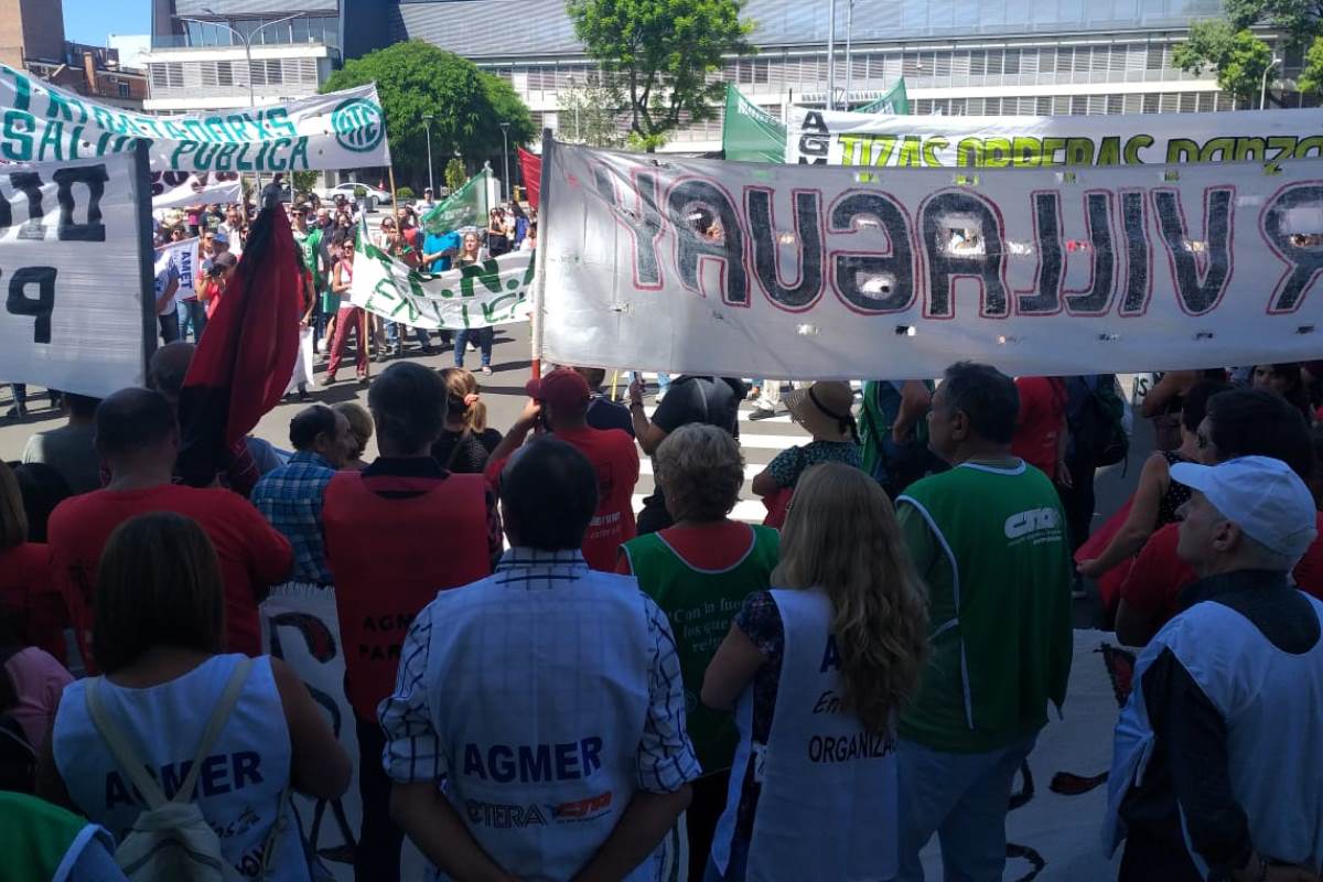 Bajo la consigna “La Caja no se toca ni se negocia”, trabajadores y representantes gremiales de los diferentes sectores de la administración pública concentraron en Plaza 1° de Mayo, marcharon a la sede de la Caja de Jubilaciones y luego se dirigieron a la Casa Gris.