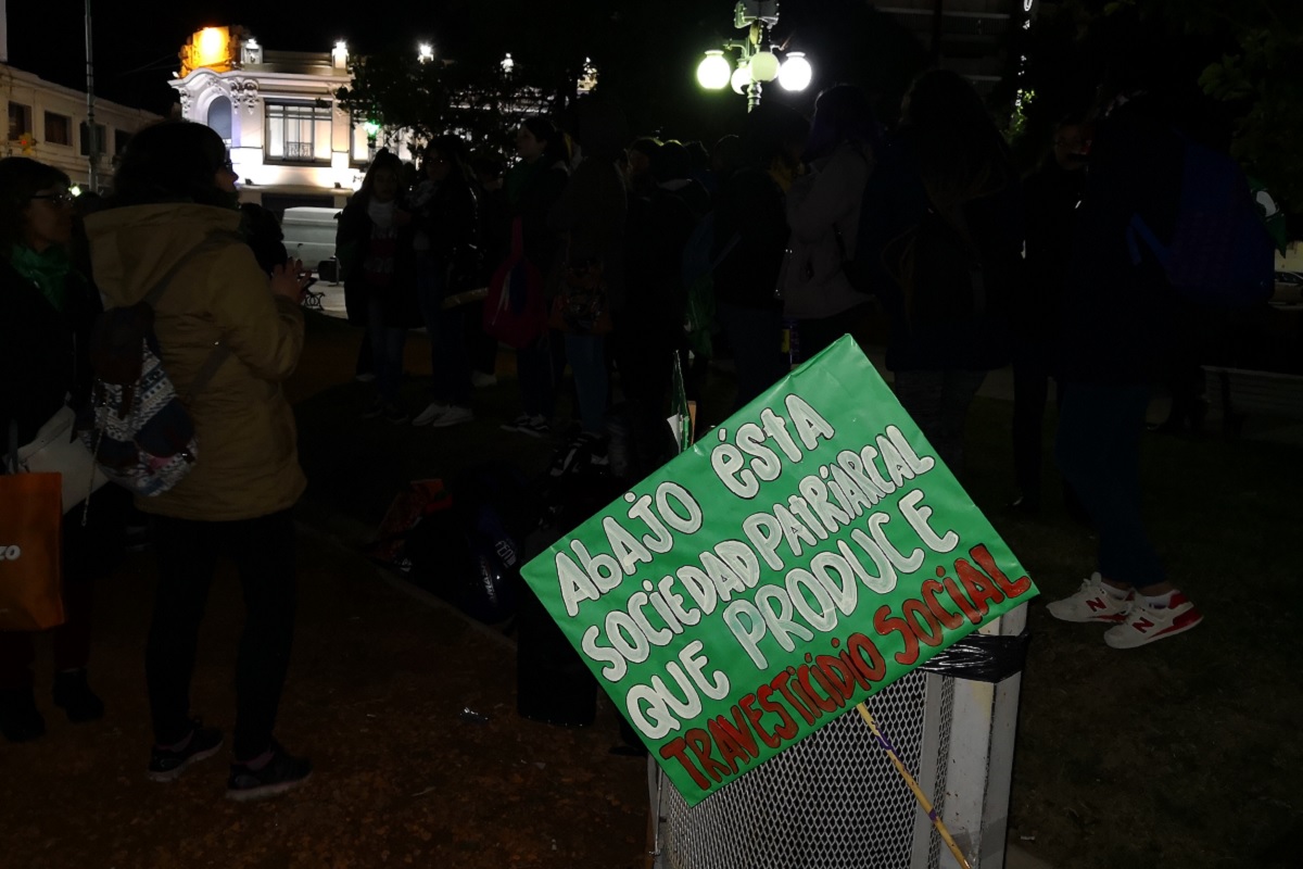 Alrededor de las 21, un grupo importante de manifestantes se organizó para seguir el debate. En torno a un bar de Colón y San Martín, que montó una pantalla hacia la calle para seguir los discursos, sostenía la vigilia más de un centenar de militantes en favor de la legalización del aborto.