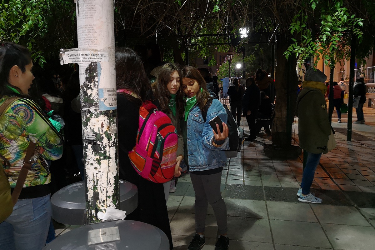 Cuidadas selfies, fotos en grupo guardaron de recuerdo el momento que se expresó en tatuajes en los rostros, usos diversos del pañuelo, cabellos teñidos de verde para la ocación.