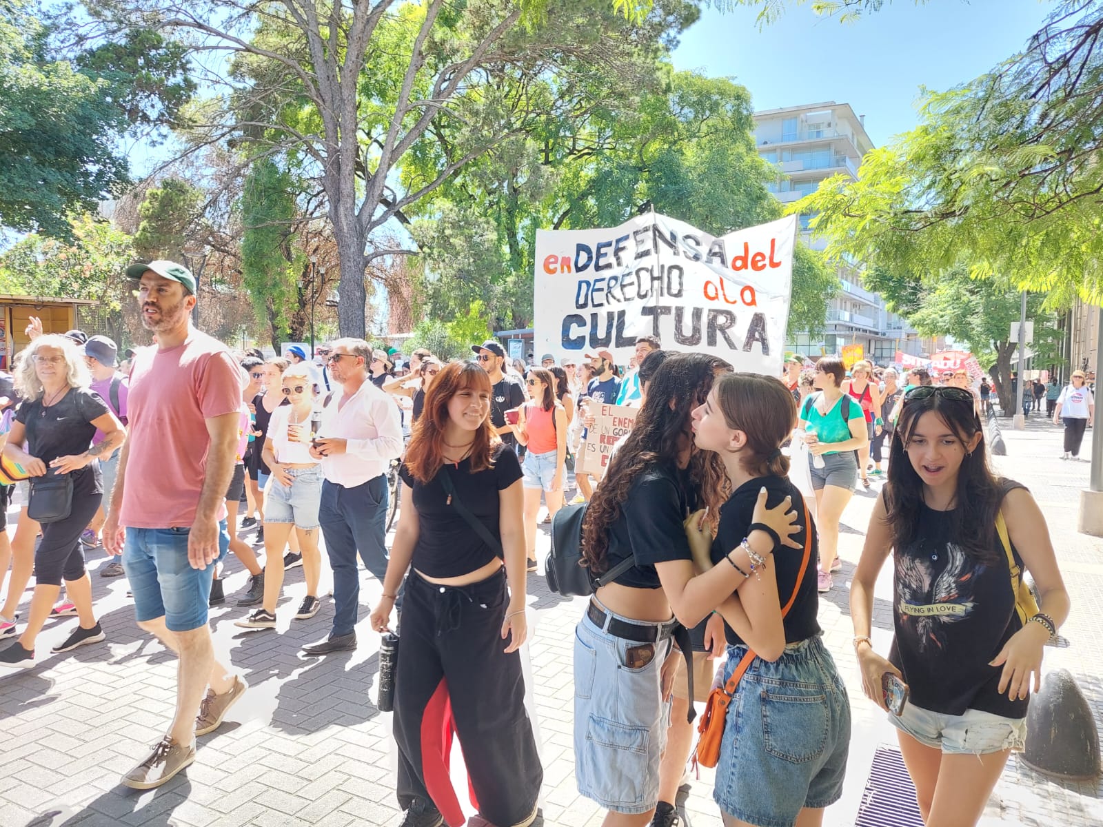 En la capital provincial la movilización tuvo una convocatoria variopinta en la que se destacó, claramente, el colectivo de la cultura, que hace semanas se reúne en espacios públicos y tomó contacto con todas las terminales políticas para sacar de la Ley Ómnibus y el DNU el capítulo que elimina cualquier financiamiento, producción o promoción de las artes.