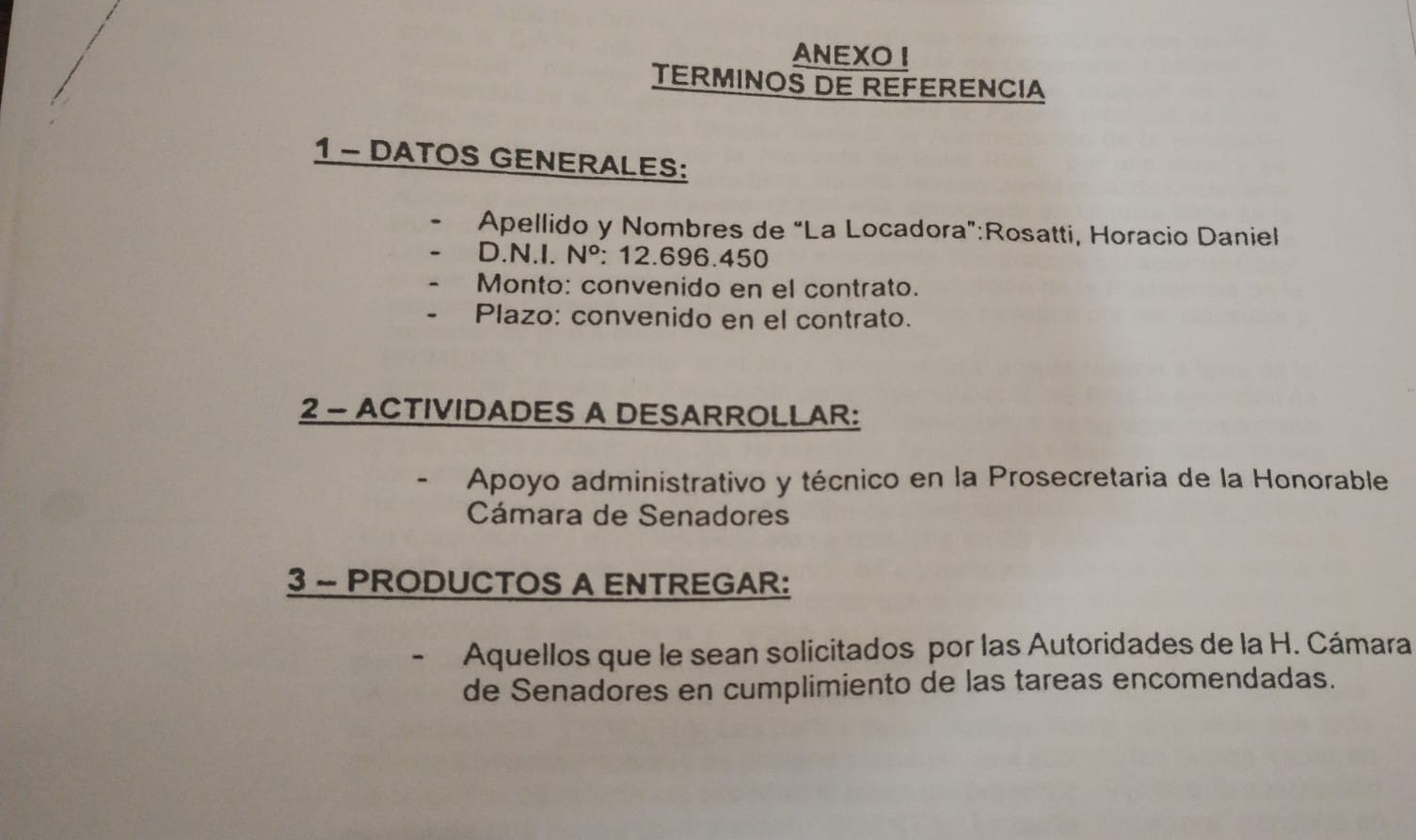 Pero además la función de Rosatti, en esos años, según figura en los contratos era la de apoyar administrativamente en el Senado.