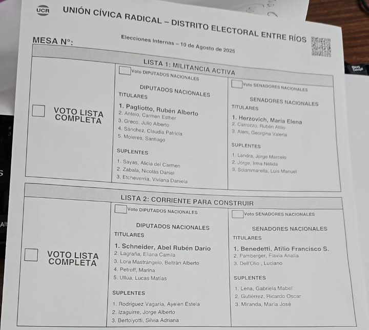En el armado de la lista Militancia Activa domina UCR Activa, que puso todos los precandidatos, a excepción de la cabeza de lista de senadores.