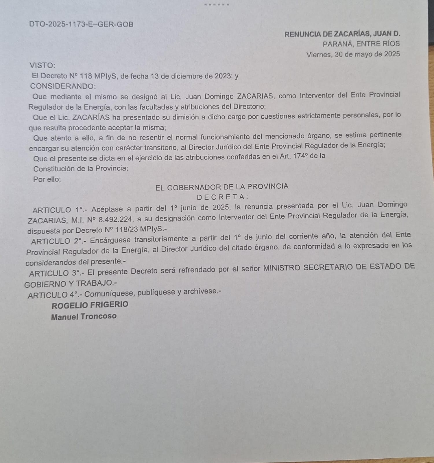 Tras la renuncia de Juan Domingo Zacarías del Ente Provincial Regulador de Energía (EPRE), quien asumirá la responsabilidad será Marcos Rodríguez Allende. No ocupará el cargo de interventor. El abogado penalista es, desde la creación del organismo, el director Jurídico.