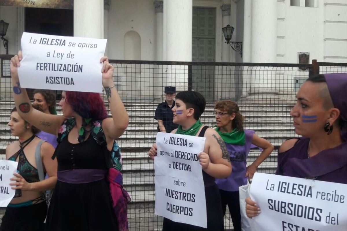 Por la mañana, el MST realizó una intervención frente a la Catedral reclamando la separación de la iglesia y el Estado, entre otras consignas.