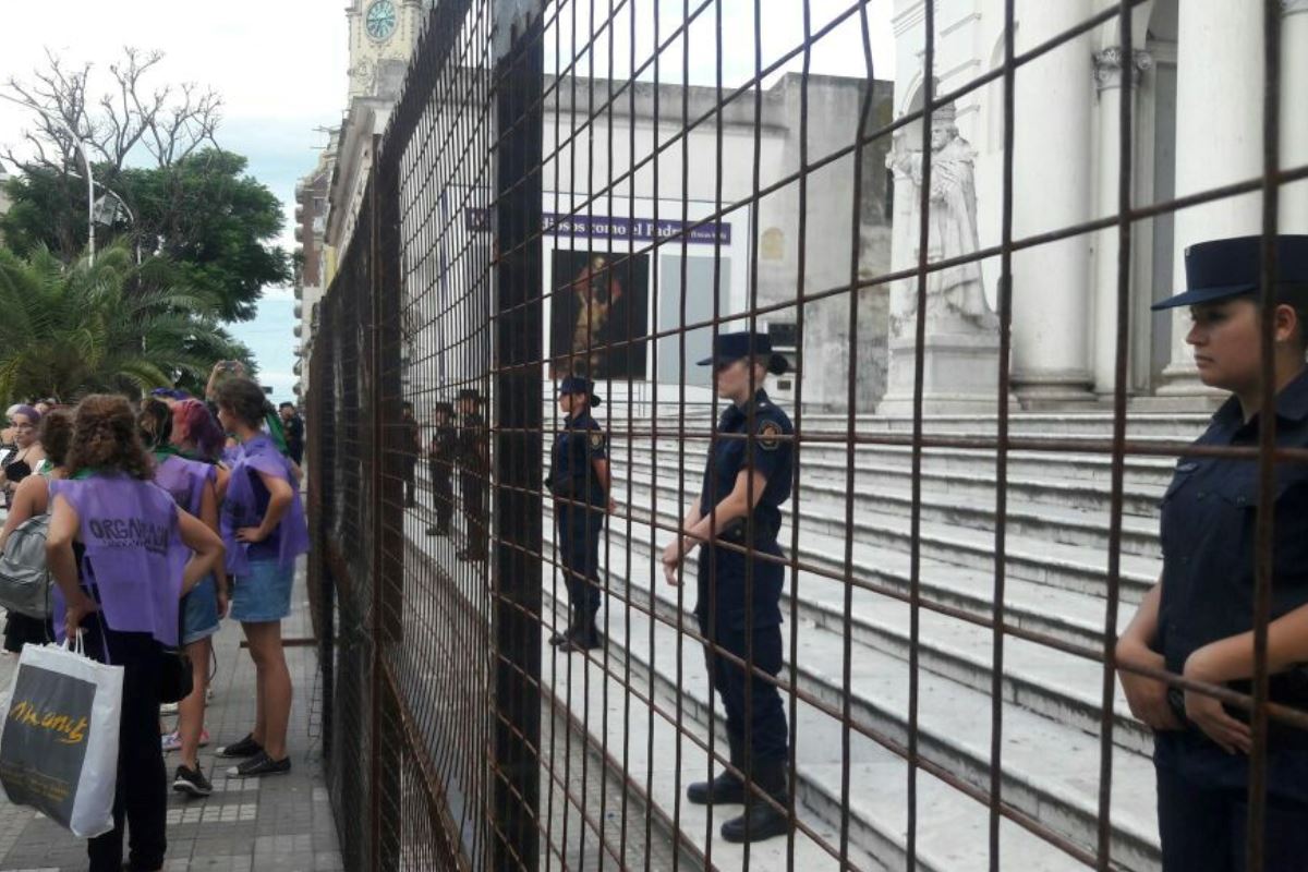 Con mucho esfuerzo, en los días previos a este miércoles, se consensuó un documento al que se dio lectura en Plaza de Mayo. Después pasaron ante el micrófono 17 representantes de organizaciones que dejaron sus consignas y fueron escuchadas con respeto por toda la concurrencia. Hubo intervenciones urbanas, tambores, danza, pintadas en el camino y un juego teatral, al cierre, que puso de manifiesto los rótulos y mandatos con los que vive una mujer en este país desde que nace. Hubo también la crítica al vallado metálico con que se cerró la catedral, delante de una decena de mujeres de la policía de Entre Ríos.