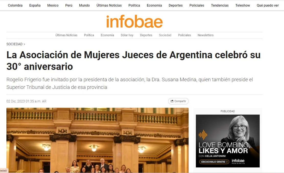La jueza entrerriana se ha manejado hábilmente con la prensa. Desde su plataforma feminista se convirtió en estrella de Infobae. De hecho le ha concedido entrevistas que ha negado a medios entrerrianos. La última referencia fue el 2 de diciembre pasado, cuando la Asociación Internacional de Mujeres Juezas celebró su 30° aniversario. En la primera línea, debajo del título, la publicación hace referencia a la invitación especial al flamante gobernador a una semana de asumir sus funciones: Rogelio Frigerio.