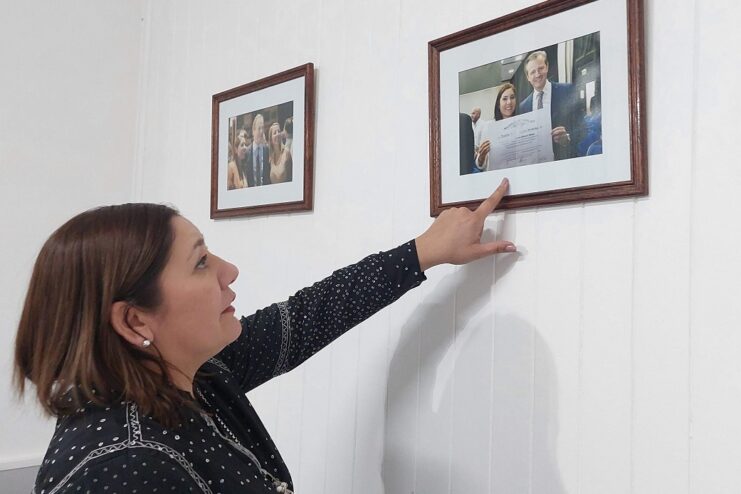 Hay tres fotos detrás de su escritorio, en su despacho, ubicado a medio camino en la galería de Casa de Gobierno, paralela a calle Santa Fe. En una posa con Bahl; en otra con el presidente Alberto Fernández; en la tercera con Bordet y la vicegobernadora Laura Stratta. Todas fueron tomadas en 2019, al momento de la asunción de este nuevo período institucional que transita el peronismo en Entre Ríos, en Paraná y en la Rosada. Para ella era el inicio de su mandato como diputada.
