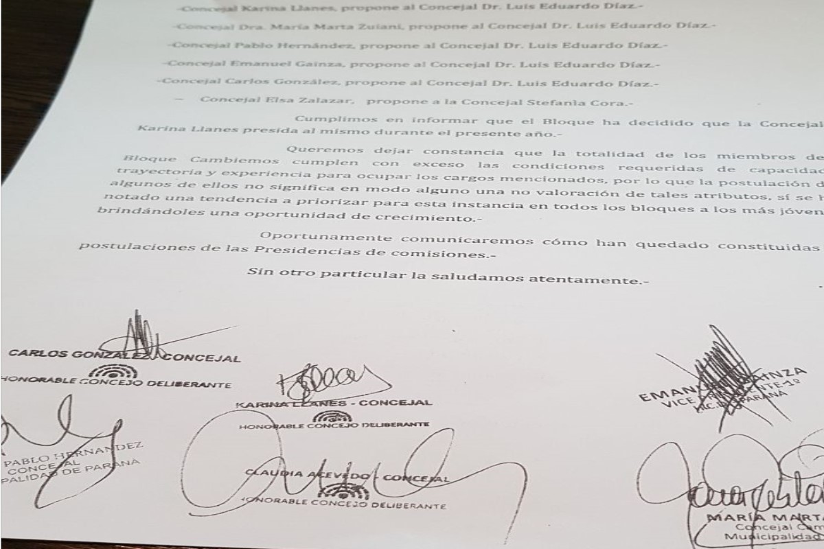 El bloque de concejales de Cambiemos informó este miércoles a la presidenta del Concejo Deliberante, Josefina Etienot, que seis de sus ocho miembros votarán en la sesión de mañana por mantener en la vicepresidencia primera del cuerpo al concejal del PRO, Emanuel Gainza.