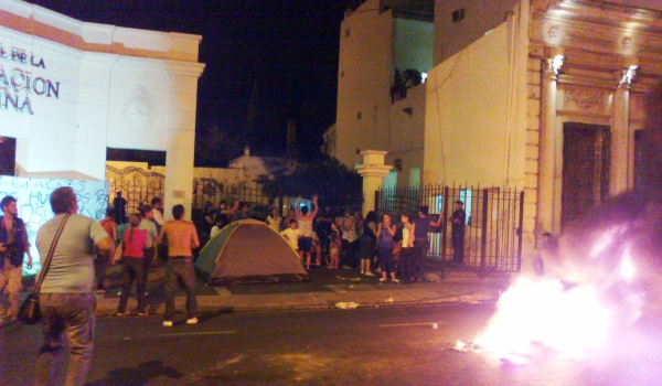 A las 2.20 de la madrugada, cuando todavía había cesanteados encadenados y la tormenta afectaba al grupo de manifestantes y sus familiares, hubo una reunión que permitió desactivar el creciente clima de tensión en el lugar.