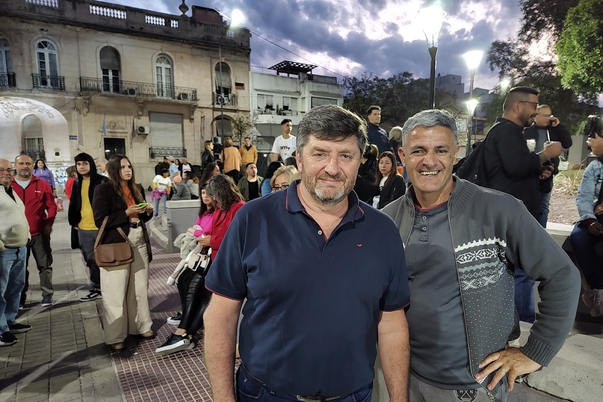 La gente llenó la peatonal desde la sede de la UCR hasta unos diez metros de Laprida. Pero otra cantidad similar de público se ubicó sobre la plaza, aprovechando la suerte de tribuna natural que ofrece el terreno elevado.