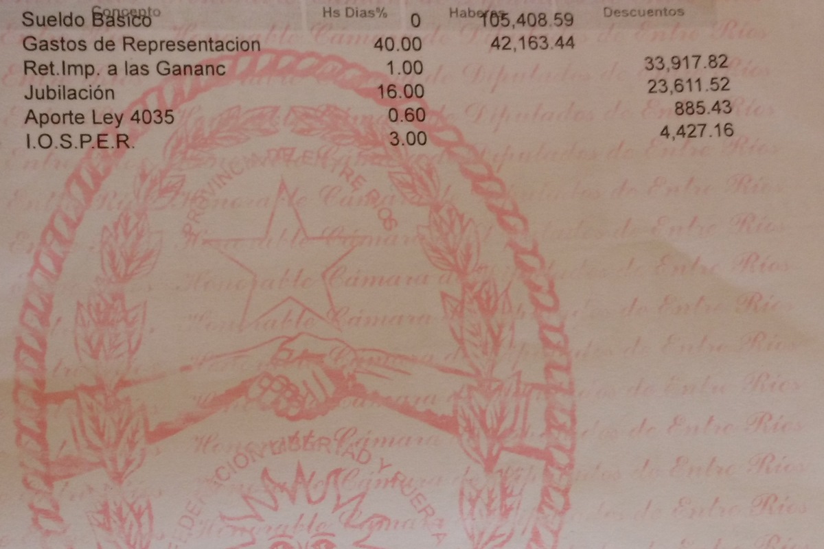 Según supo Página Política, un legislador, al inicio de año, percibía 79.758 pesos (sujeto a descuentos, por ejemplo ganancias). Hoy percibe 105.408,59 pesos, lo que significa un incremento del 32,5 por ciento. En la mano, el monto se reduce a 84.730,10 pesos.