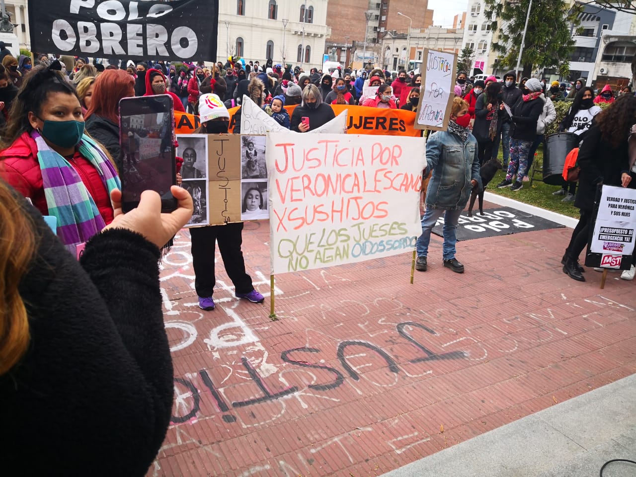 Las vecinas de la mujer, la mayoría muy jóvenes, de entre 15 y 18 años, se acercaron a la concentración y reclamaron que los jueces “se pongan en el lugar de Verónica, que piensen en sus hijos”. Otro grupo de chicas -Abril, Fiona, Juliana- cuenta que han participado “en muchas marchas como esta, por Fátima, por Úrsula, por todas”. “Me imagino la vida de esa mujer que hoy se está muriendo. Queremos que el Estado, la policía nos dé bola”, reclamó Fiona y Juliana transmitió “a todas las mujeres que pasan por esta situación que no están solas, que vamos a estar acá”.