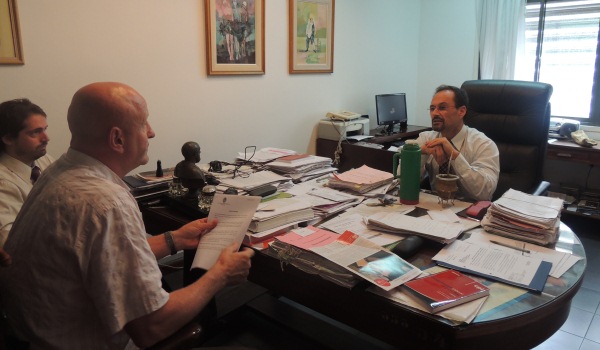 Viale fue recibido junto a Patricio Cozzi y el doctor Emiliano Rodríguez. La reunión fue solicitada por el legislador para tomar conocimiento, de primera mano, acerca del avance en la causa en torno a la quiebra de la firma mencionada.